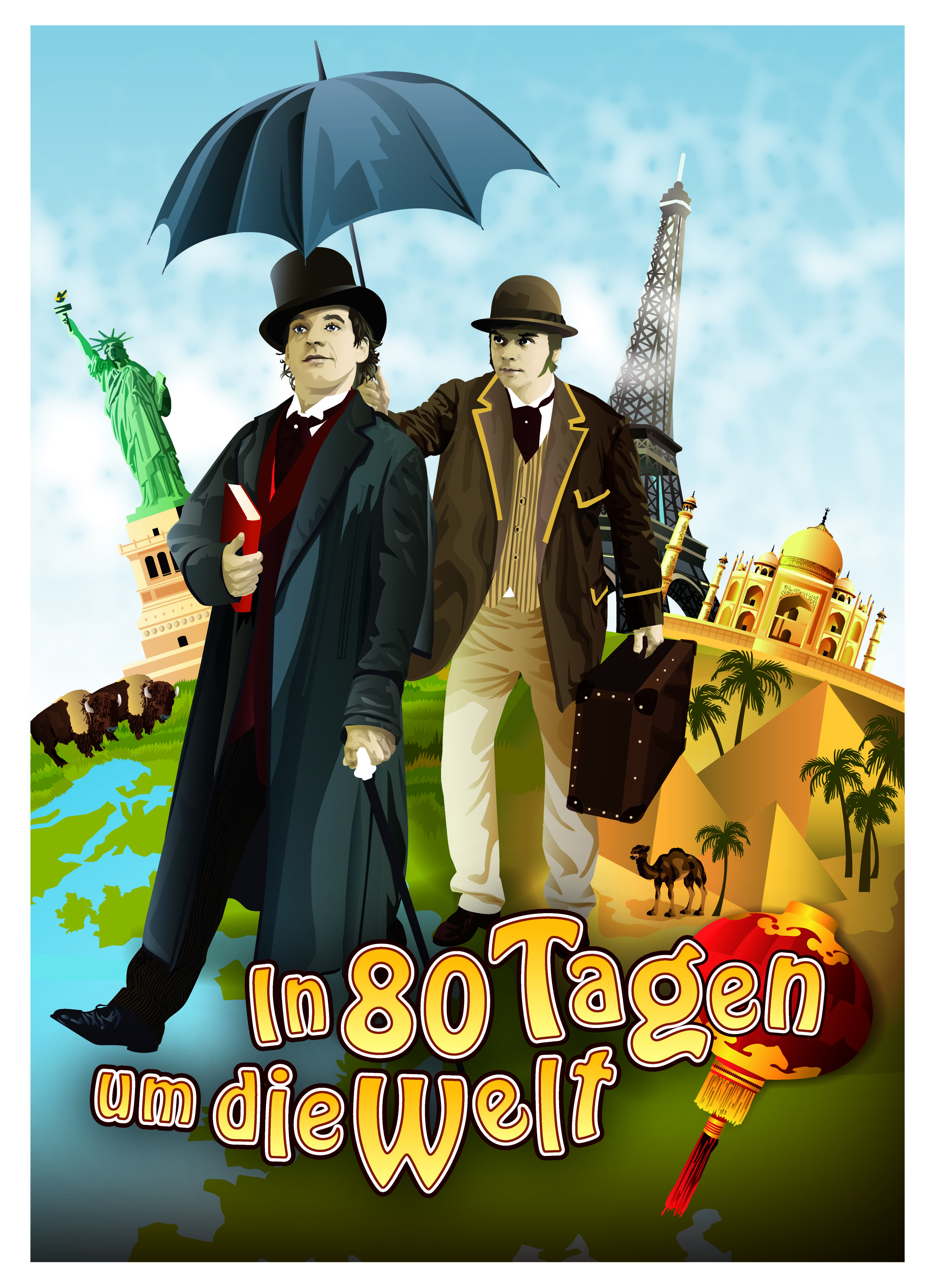 nach dem weltberühmten Roman von 1873. Phileas Fogg, wagemutiger Gentleman, geht in seinem Londoner Club eine riskante Wette ein: In 80 Tagen die Welt zu umrunden. Gemeinsam mit seinem Diener Passepartout begibt er sich auf eine fantastische Abenteuerreise, immer verfolgt von Inspektor Fix, der die beiden um jeden Preis zu stoppen versucht.
