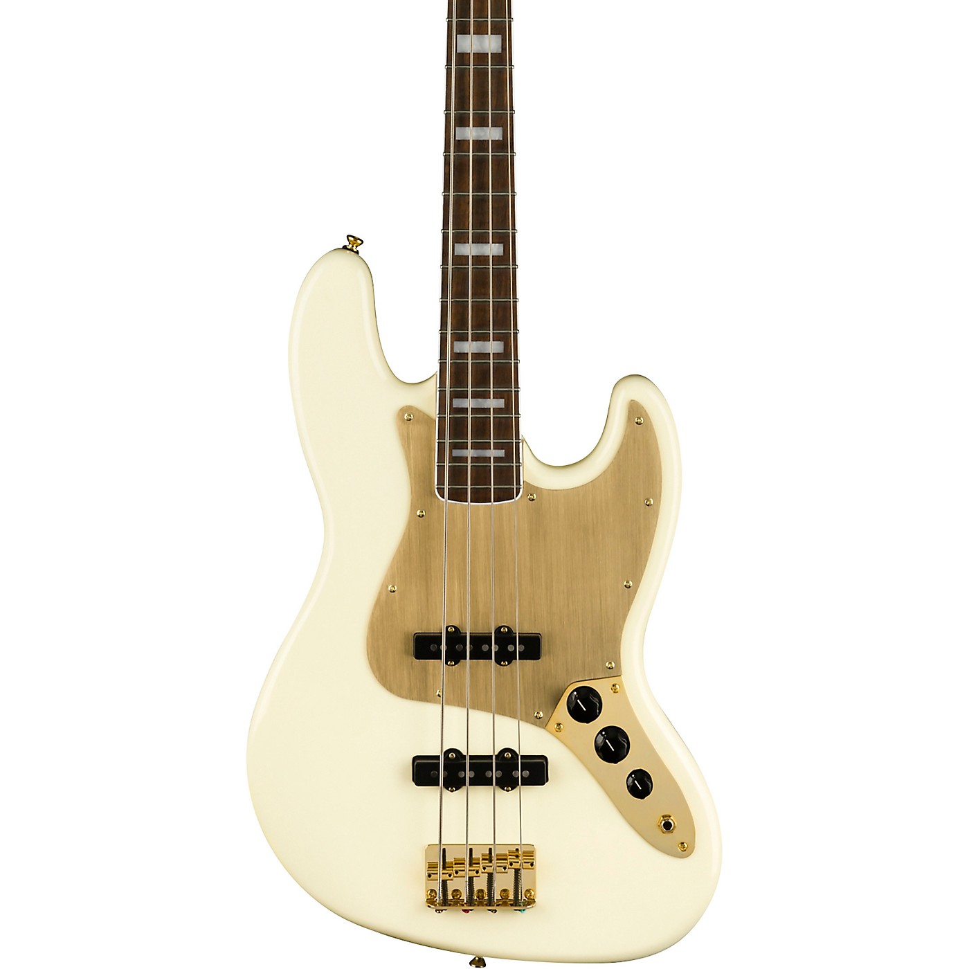 Squier 40th Anniversary Jazz Bass Gold Edition in Olympic White Andertons Music Co.