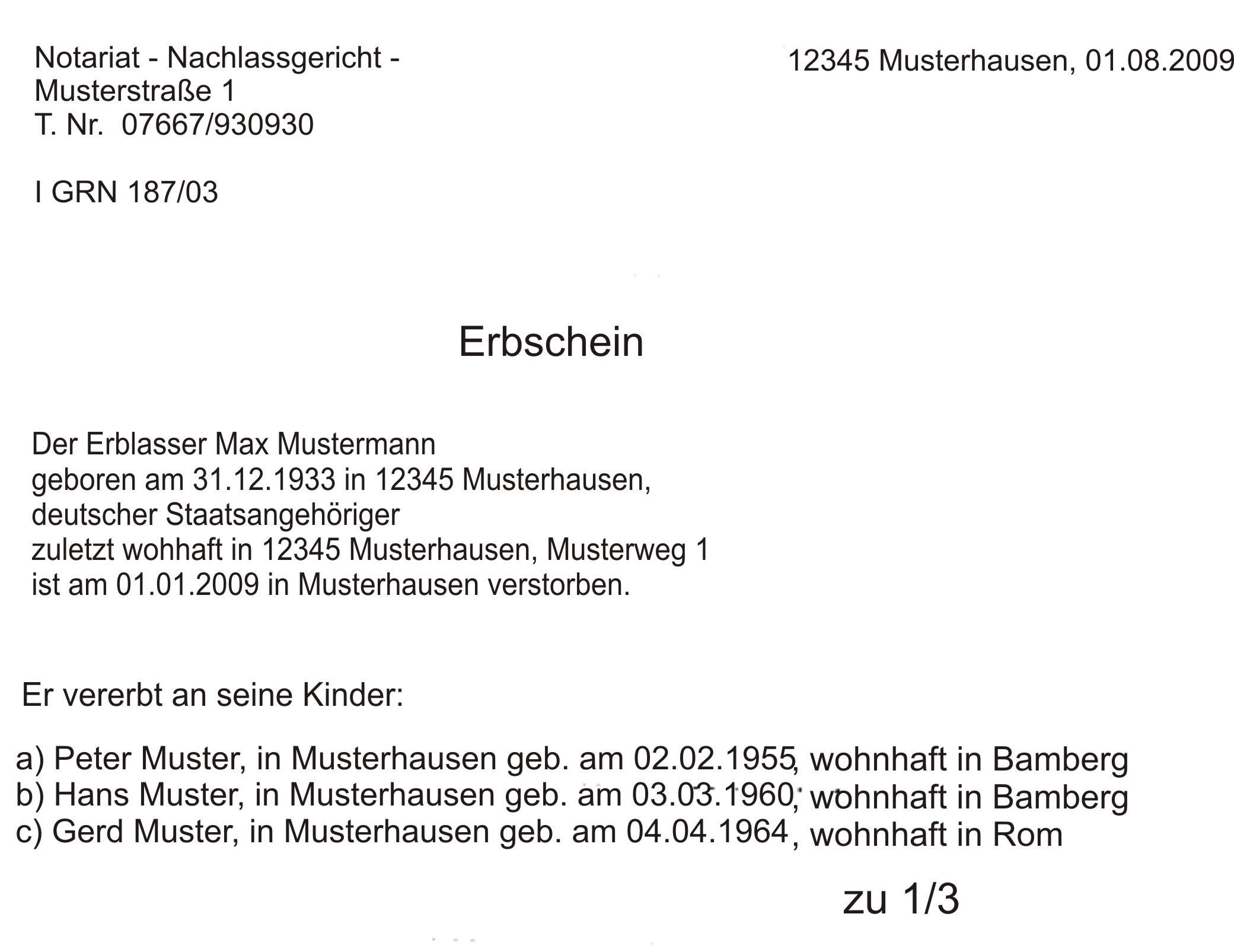 Was steht auf dem Erbschein? (Konto, Erbengemeinschaft)